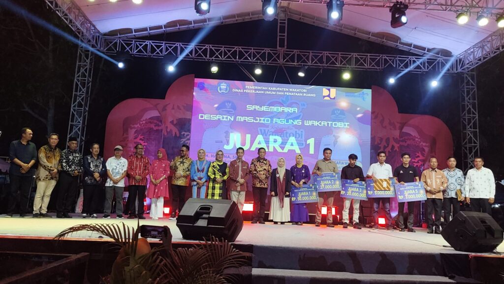 BUTON RAYA POST – Dewan juri Sayembara Desain Masjid Agung Kabupaten Wakatobi mengumumkan para pemenang lomba pada malam penutupan peringatan Hari Ulang Tahun (HUT) Kabupaten Wakatobi ke-22, yang berlangsung di