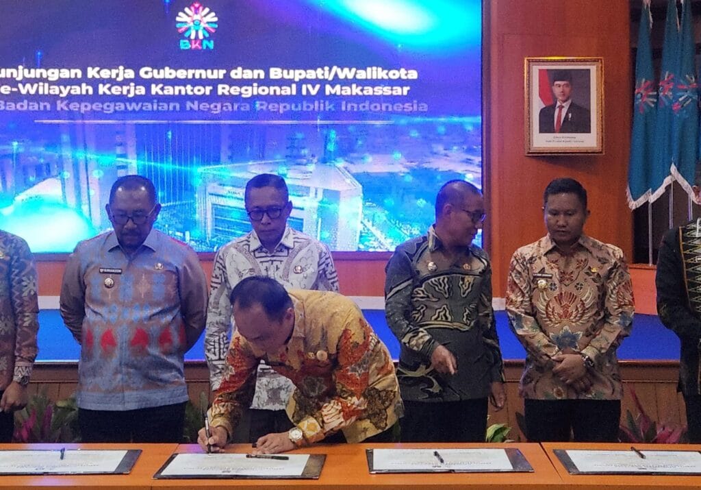 Bupati Buton Utara (Butur) Afirudin Mathara, bersama seluruh kepala daerah di wilayah kerja Kantor Regional IV BKN menandatangani Komitmen Pembangunan Meritokrasi Instansi Daerah. Penandatanganan dipimpin langsung Kepala BKN RI, Zudan